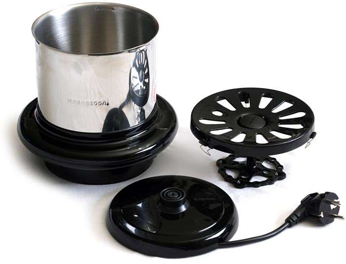 받침대, 스테인리스 본체, 그리고 넘침방지 기능있는 뚜껑으로 구성