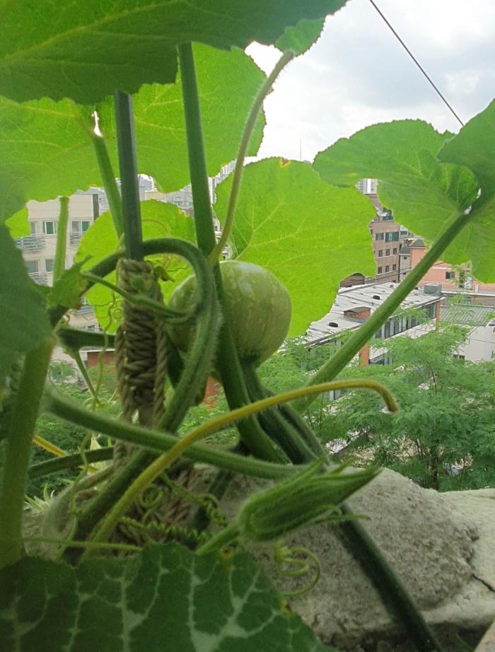 3년째 호박 모종을 구입했으나 올해 처음 호박이 달렸어요. 너무 귀엽고 신기합니다.