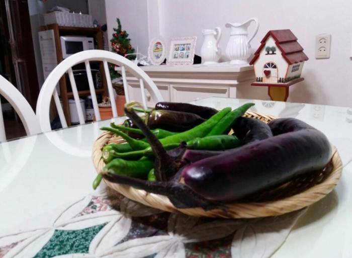 엄마가 가지 한 나무 있으면 식구 수대로 달린다고 했는데 지난해에는 가지 하나 달려 아기 가지가 늙은 가지가 될 때 까지 눈으로만 호강했는데 올해는 이미 한 개 뚝 따서 냉장고에 있어요.