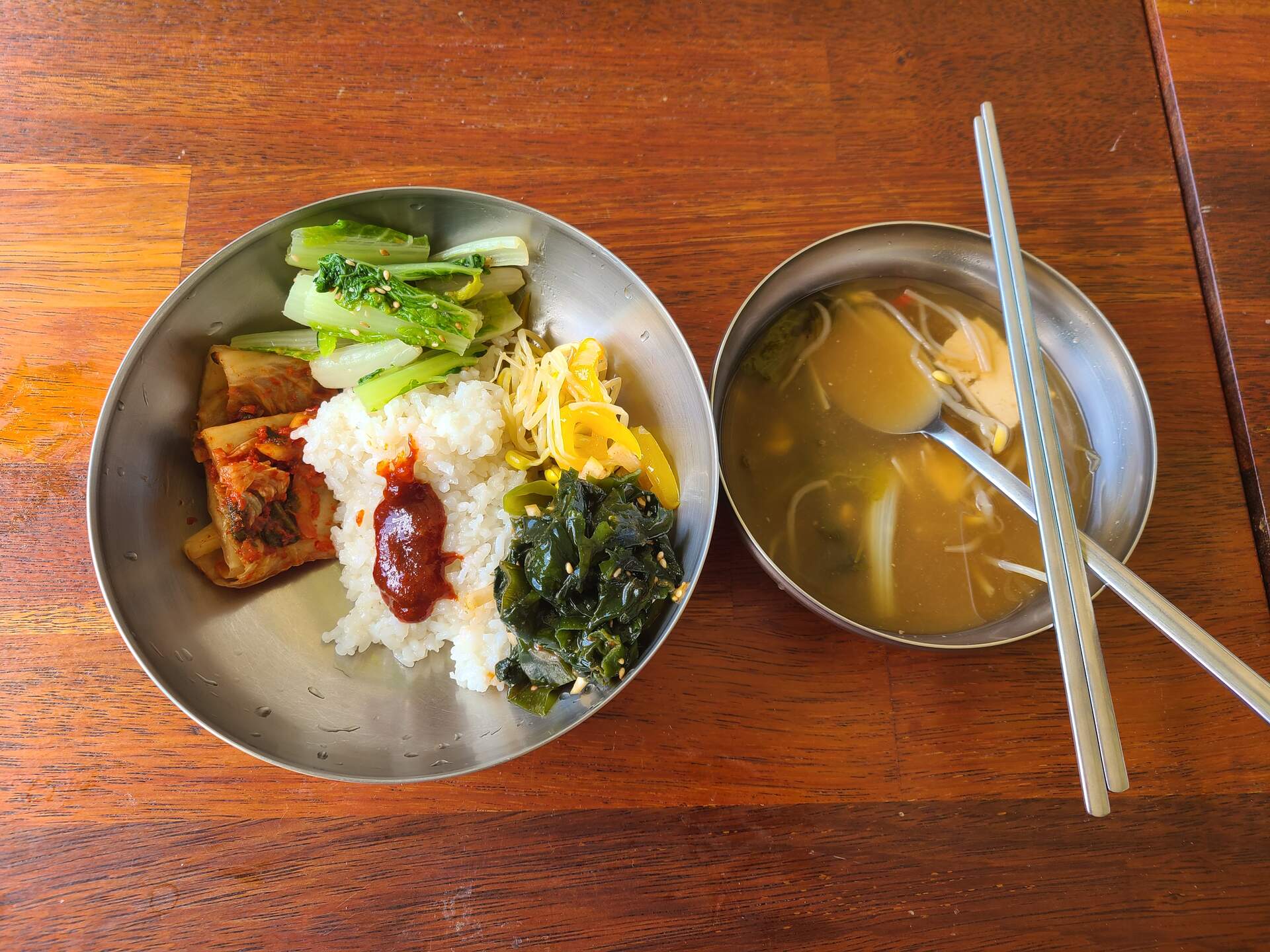 원래 하산해서 점심을 먹으려고 했는데 적멸보궁에 계신 보살님 심부름으로 공양간에 찹쌀을 배달하게 되어 점심공양을 하게 되었는데 정말 꿀맛이더라구요.