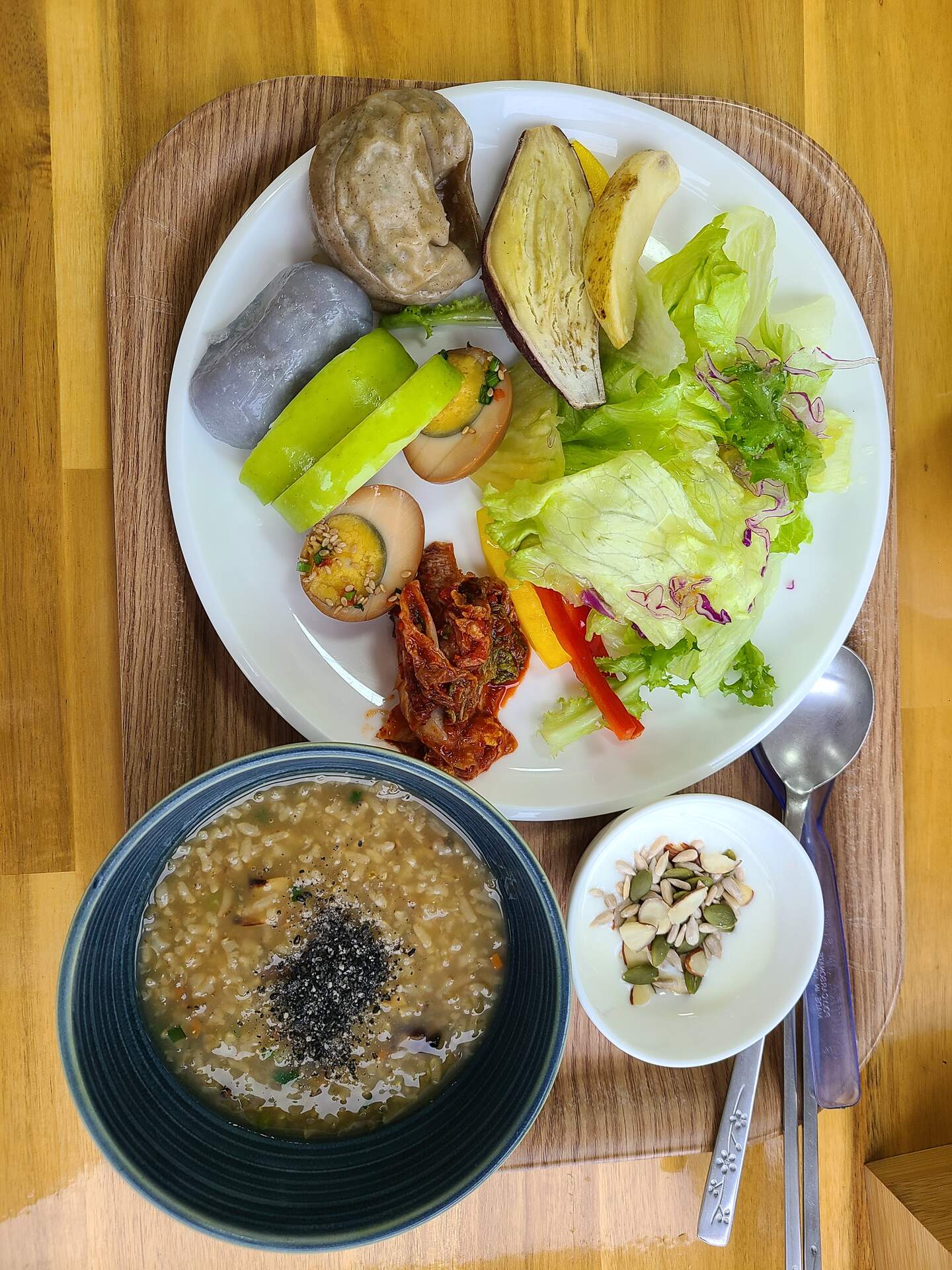 아침은 숙소에서 조식, 고기없는 건강식이라는데 꽤 괜찮았어요.