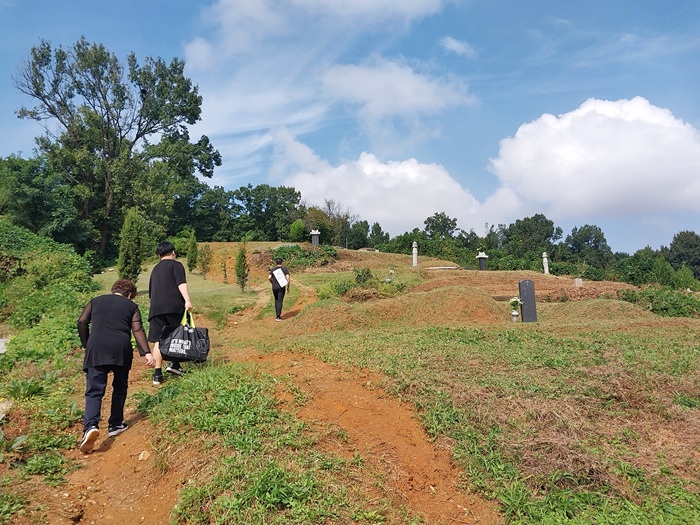 저는 오늘 엄마랑 남편이랑 솔이랑 넷이서 미리 성묘를 다녀왔어요.