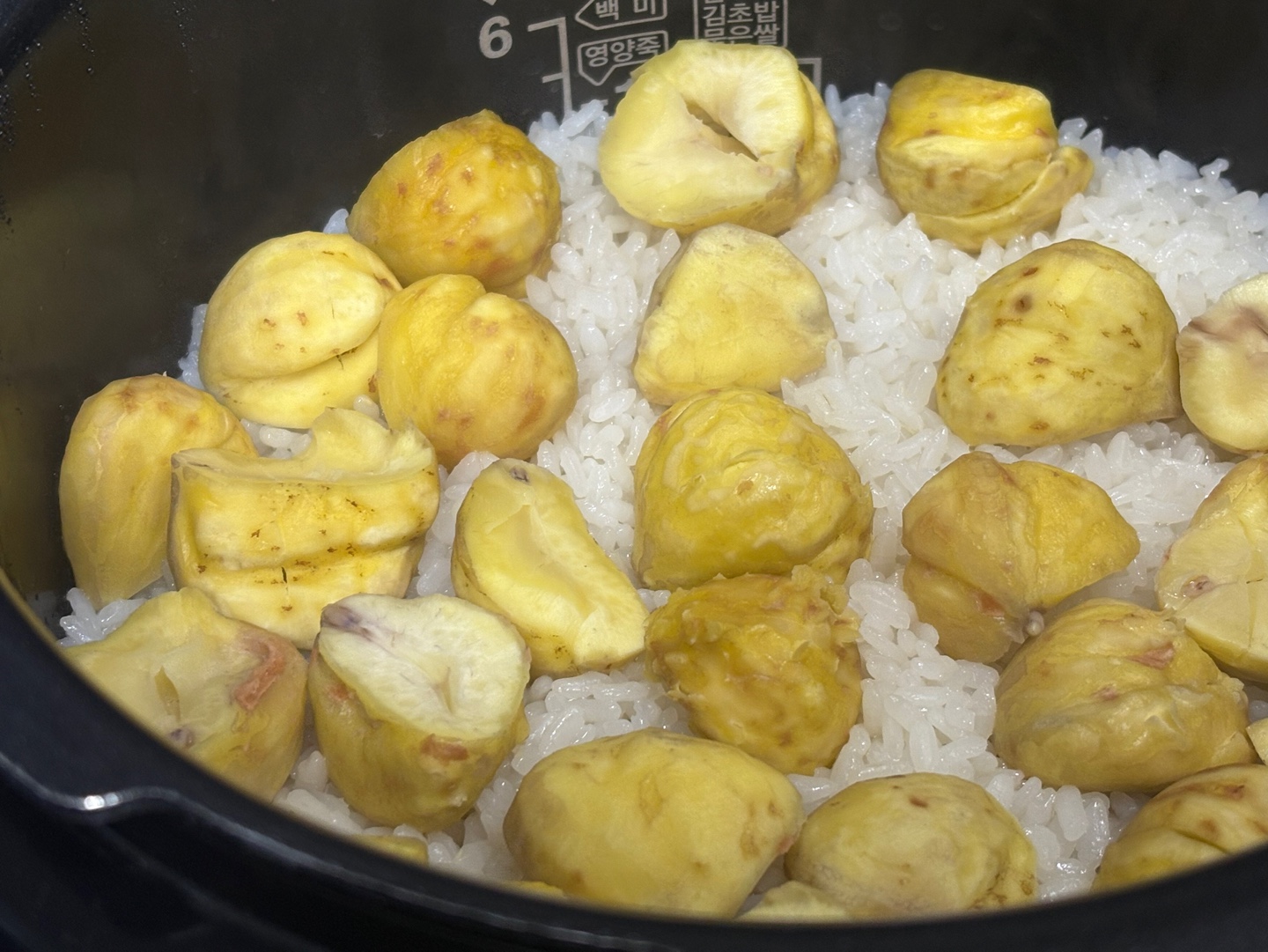 햇밤이 많이 나왔길래 햅쌀에 햇밤을 넉넉히 넣어 밤밥을 지었습니다.