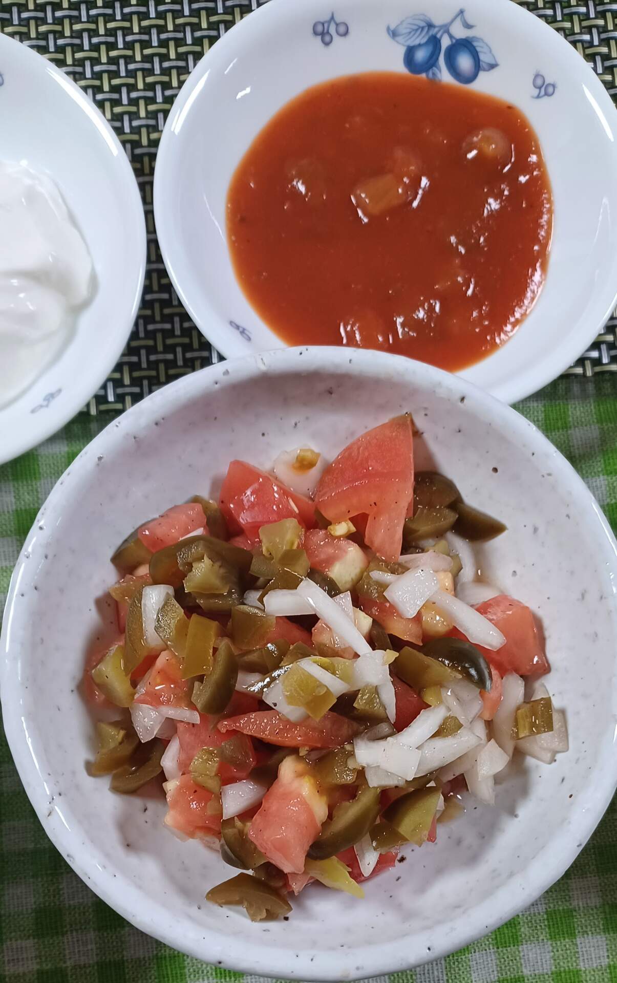 토마토, 채썬양파 물에 담가 매운기 빼고 할라피뇨랑 섞어서