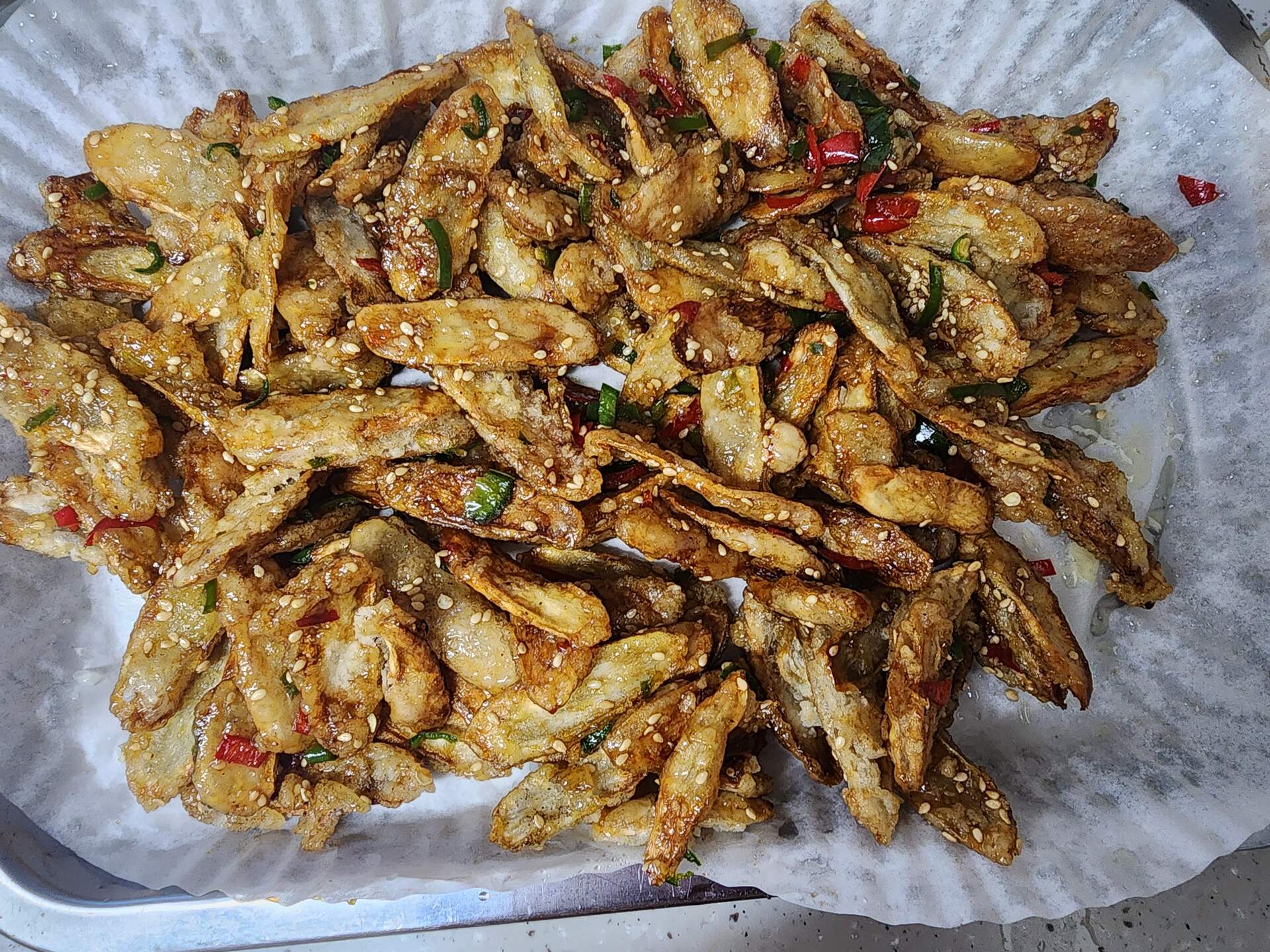 전분가루묻혀 달궈진 기름에 튀기듯굽듯