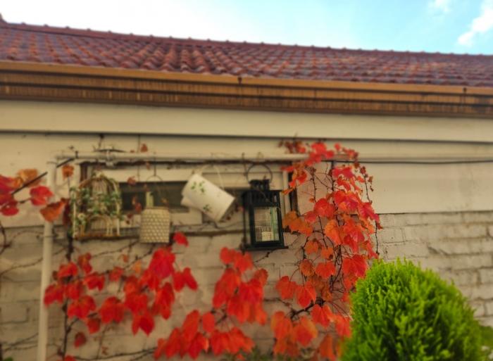마당 화분에 물을 주고, 담쟁이 넝쿨이 이제 가을이 얼마 남지 않음을 알려 주네요.