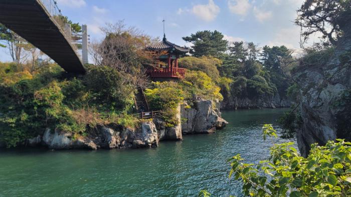 용연 계곡. 바다와 민물이 만나 물빛이 오묘해요