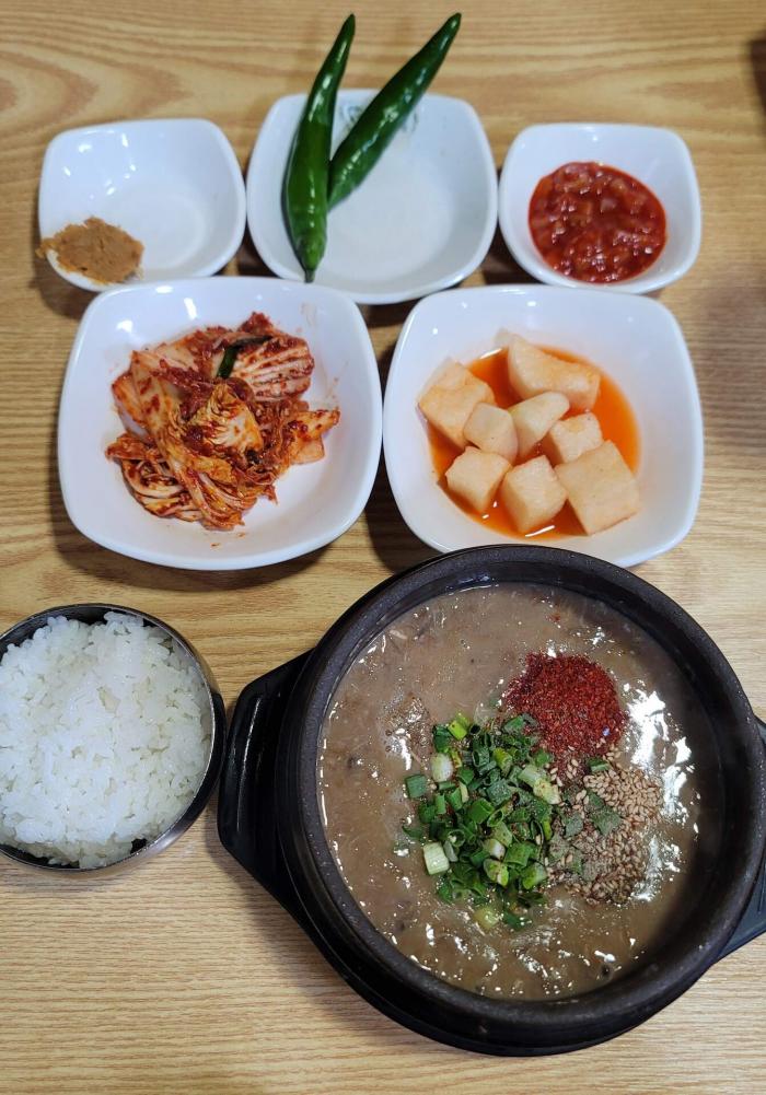 마지막날 숙소에서 가까워 한번 가봤던 우진해장국. 대기 156번이었는데 70번까지 불렀다 해서 포기하려다 근처 1시간 정도 둘러보고 오니 차례 되어 먹었어요. 고사리와 소고기를 가늘게 찢어 끓였는데 국보다는 죽이나 스프에 가까웠어요.