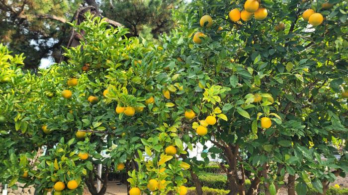 해장국집 대기하는 시간에 들른 관덕정 귤나무. 귤 종류가 많아서 놀랐어요.