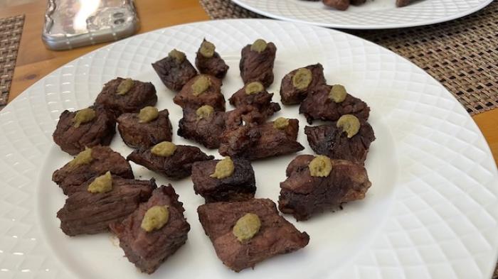 와사비 맛도 나고 상큼한 그 머시기를 스테이크 위에 올리니 고기맛이 더 살아나고 퍽퍽하지도 않아서 맛있더군요.