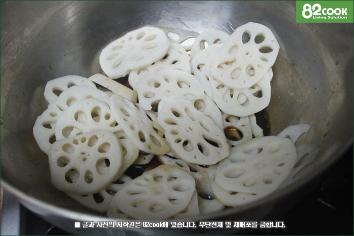 6. 연근이 먹음직한 갈색이 될 때까지, 15분 정도 조려줘요.