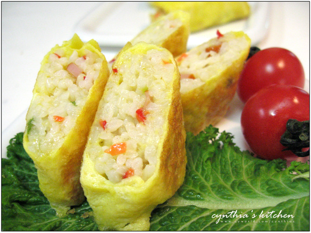 볶음밥을 달걀에 말아서 부쳐낸... 일명 '달걀밥'이지요.