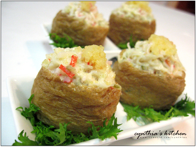 새콤하고 고소한 유부초밥과 상큼한 샐러드... 특히 오도독 씹히는 날치알이 넘 잘 어울려요.