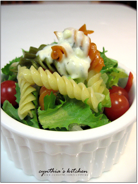 색색의 파스타가 들어간 든든한 샐러드랍니다.