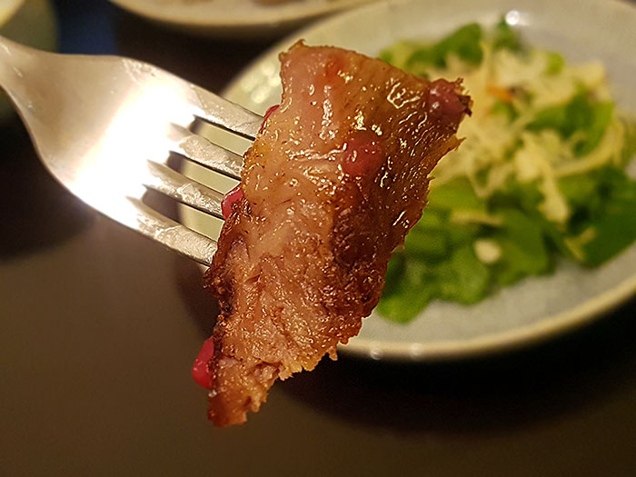 소스는 석류청소스를 뿌려줬는데, 데미글라스소스에 굵게 다진 석류청을 섞어