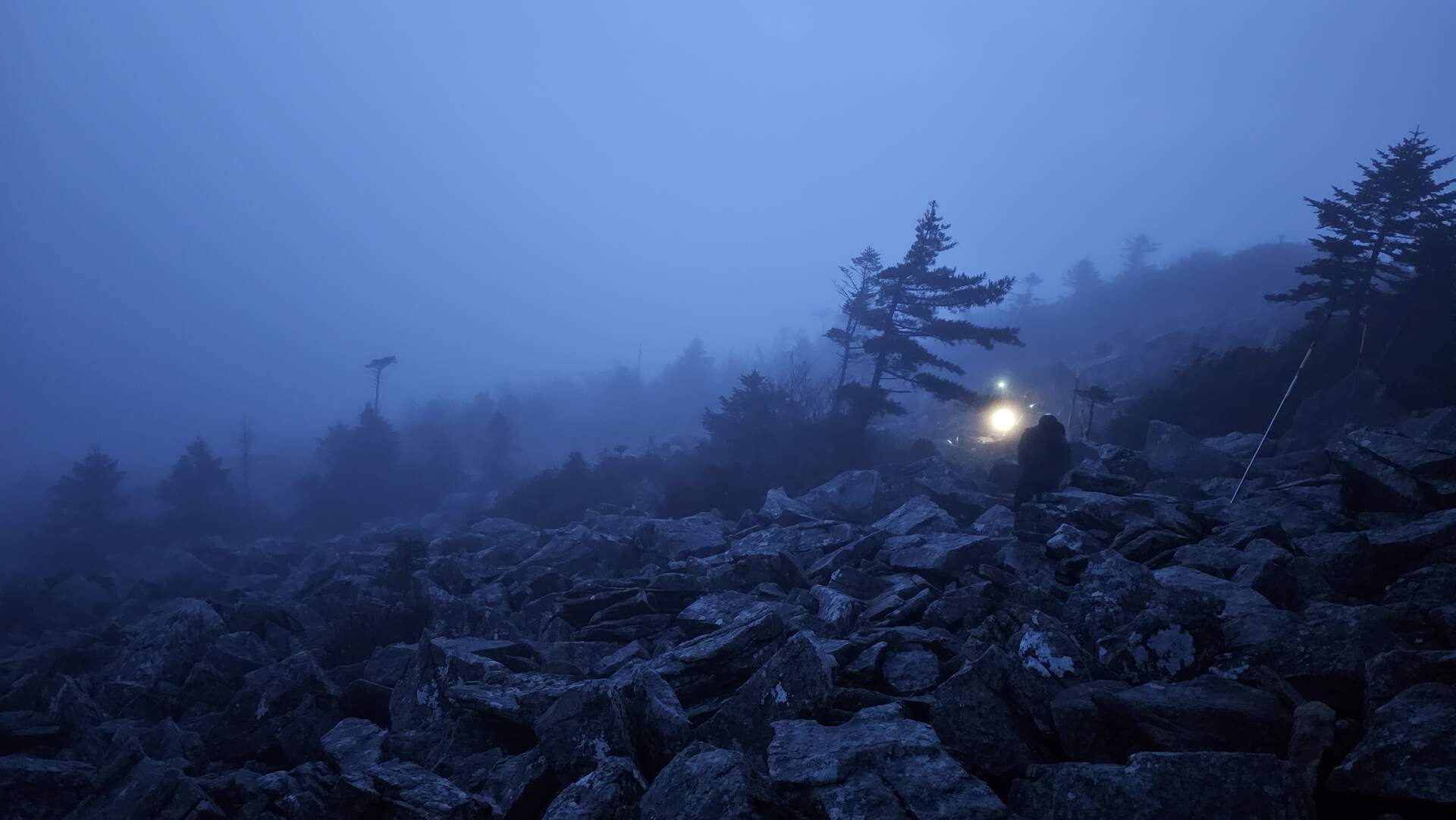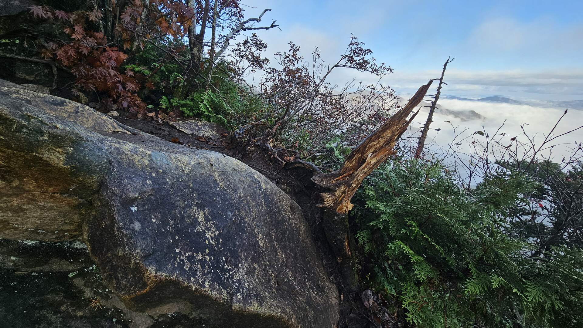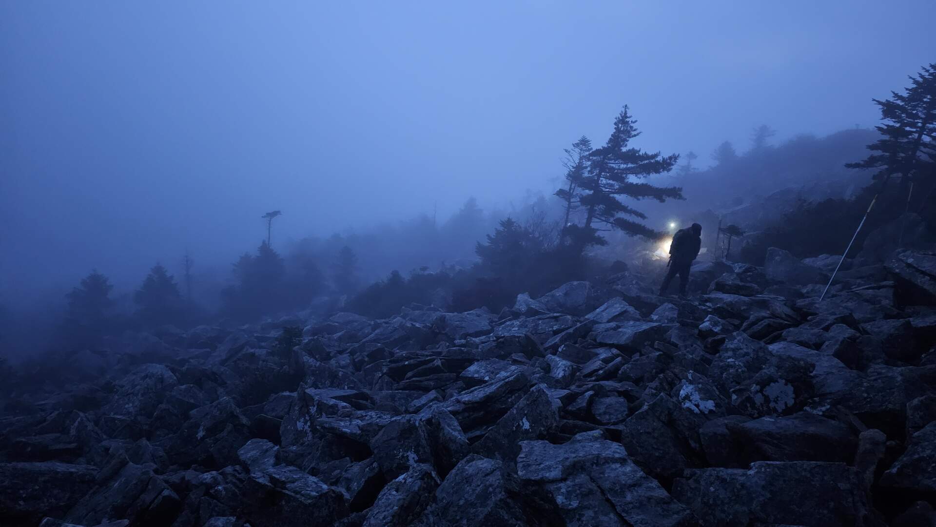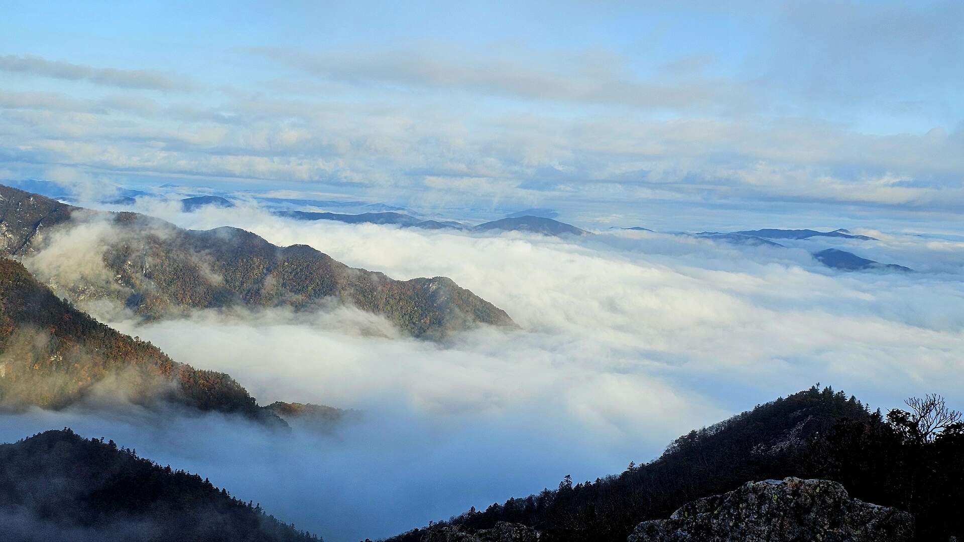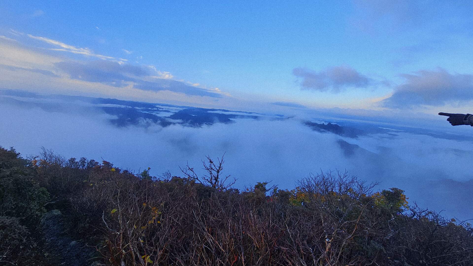 이슬비는 그치고 순간 운무가 걷히더니 대청봉 쪽으로 해가 떠오르고.아주 잠시.