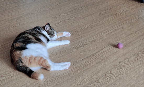 열심히 굴리고 놀다가  애착 방석에 던지거나  물고 들어와
