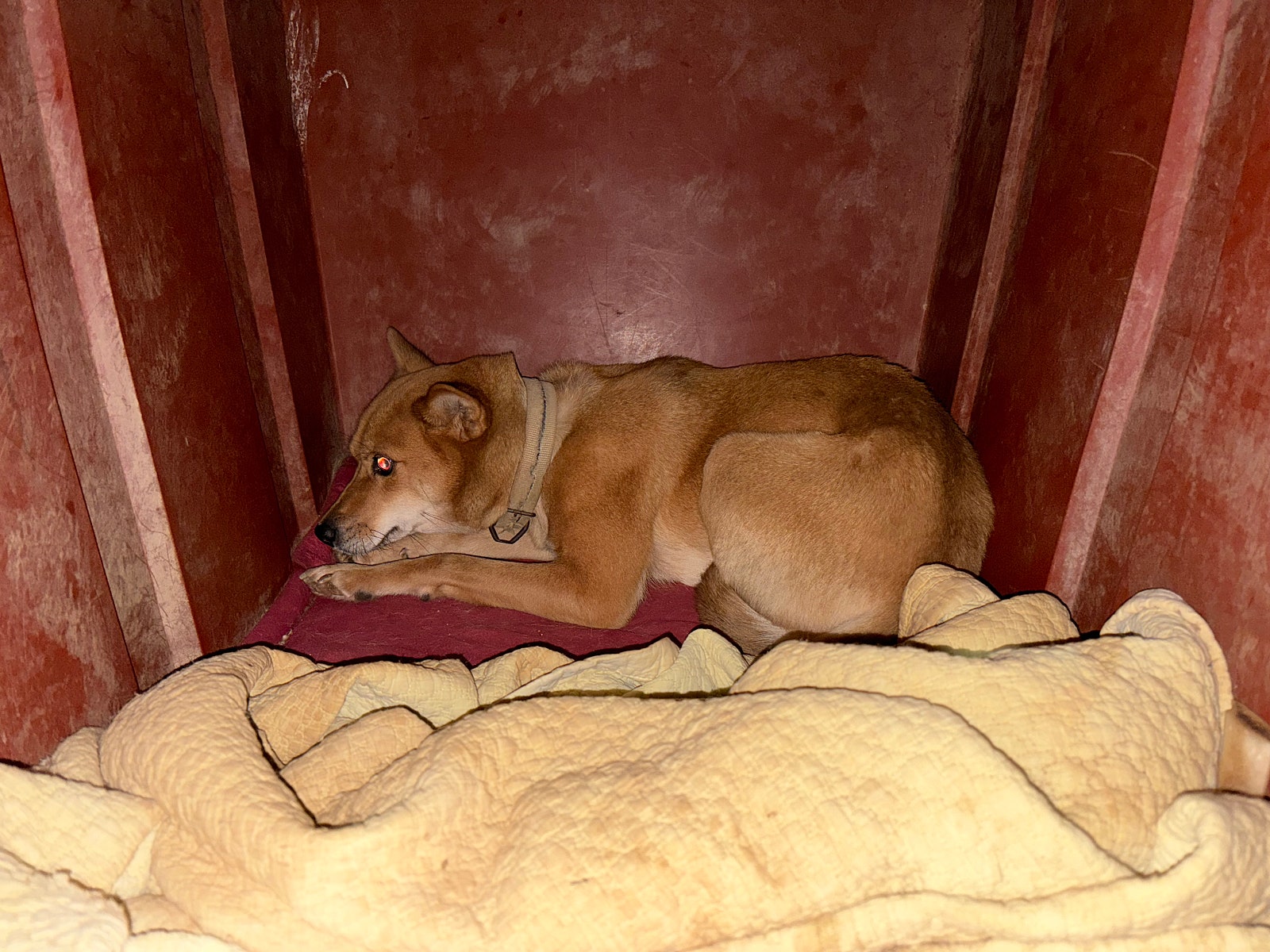 (보호지에 온 첫날_사람과 낯선 곳이 두려워 몸을 최대한 숨기는 도담이)