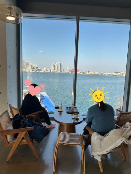 청초호가 보이는 카페에서 엄마랑 언니랑
